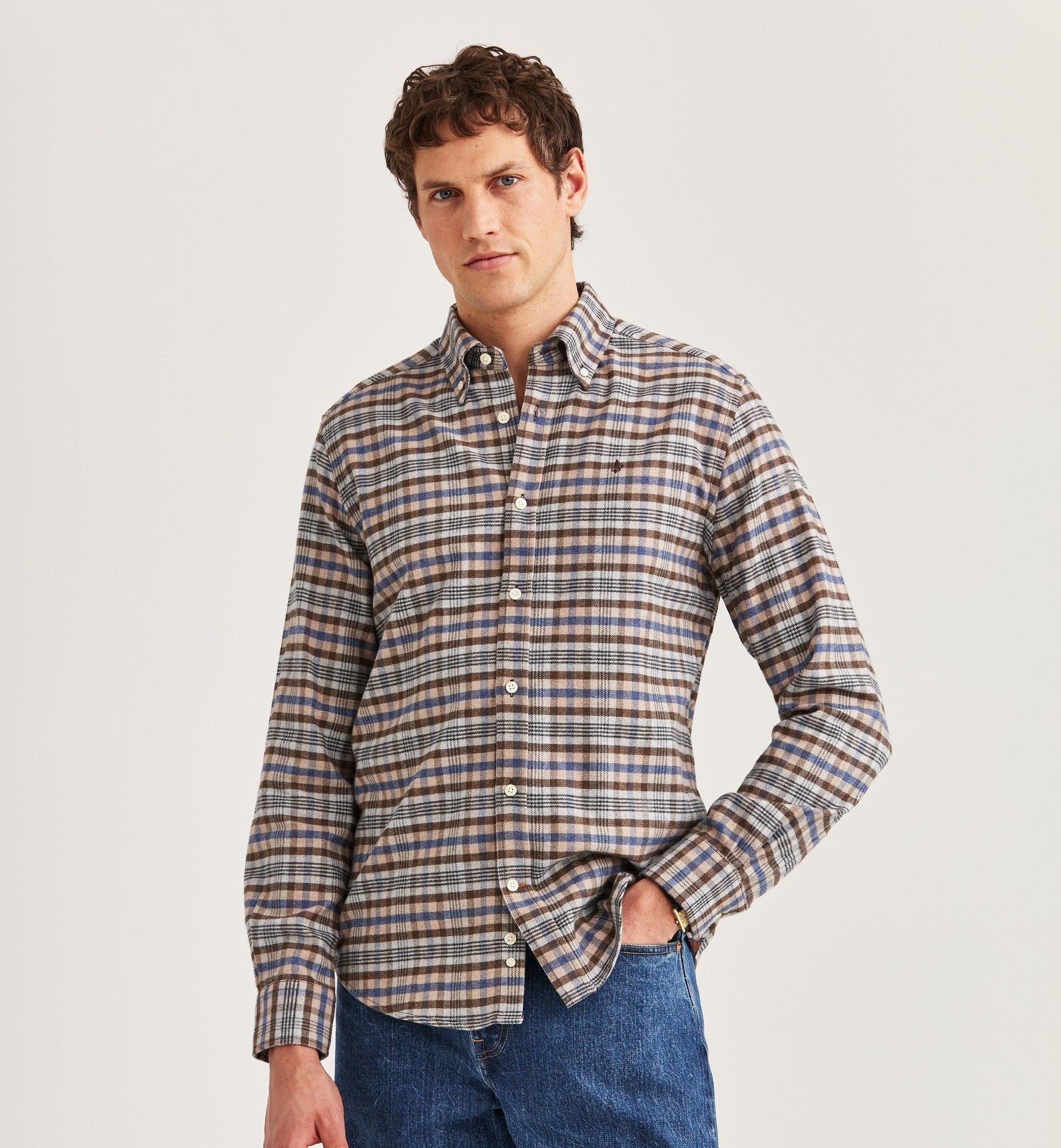 Flannel Check Shirt, en klassisk rutete skjorte i myk, børstet bomullsflanell. Varm uten å føles tung, dette er et plagg som fungerer like godt kneppet opp under en jakke som det gjør åpen over en t-skjorte. Fargepaletten er høstlig – lett å kombinere med denim, kordfløyel eller ull. En hverdagsessens med en tidløs følelse.