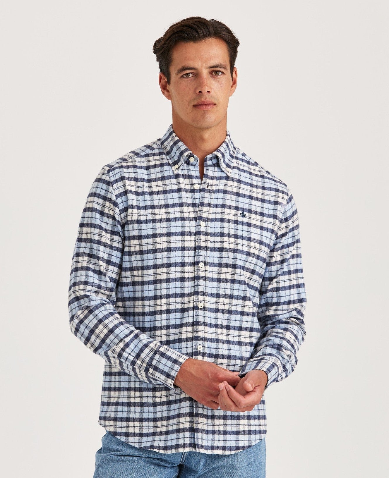 Flannel Check Shirt, en klassisk rutete skjorte i myk, børstet bomullsflanell. Varm uten å føles tung, dette er et plagg som fungerer like godt kneppet opp under en jakke som det gjør åpen over en t-skjorte. Fargepaletten er høstlig – lett å kombinere med denim, kordfløyel eller ull. En hverdagsessens med en tidløs følelse.