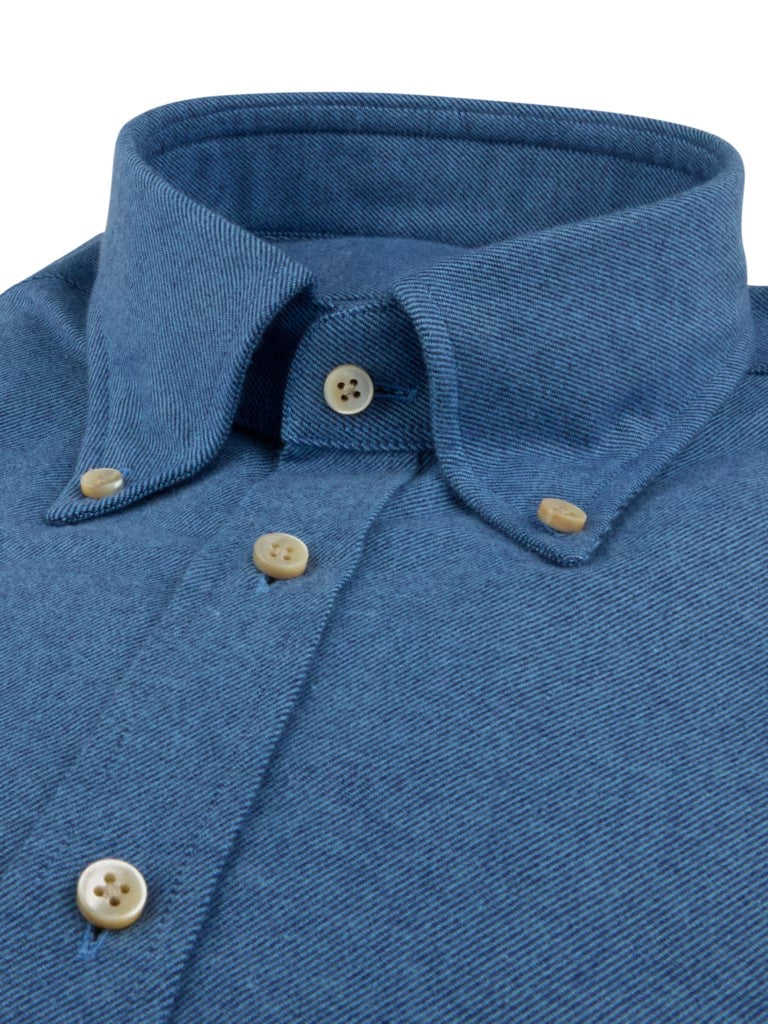 Myk flanellskjorte laget av twofold bomullsflanell. Skjorten har perlemorsknapper, enkle mansjetter og button down-krage.