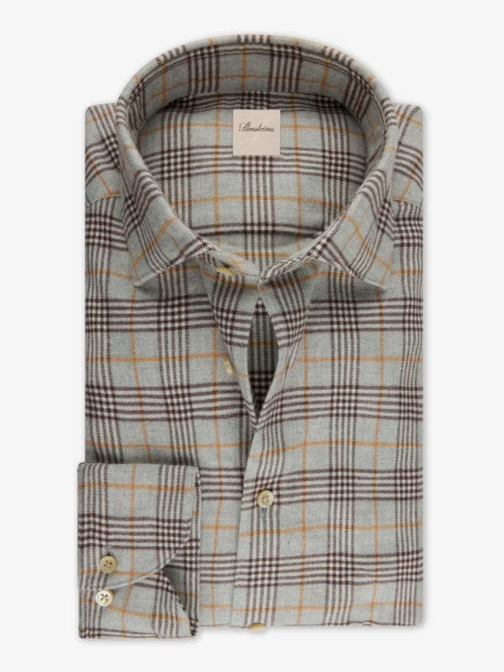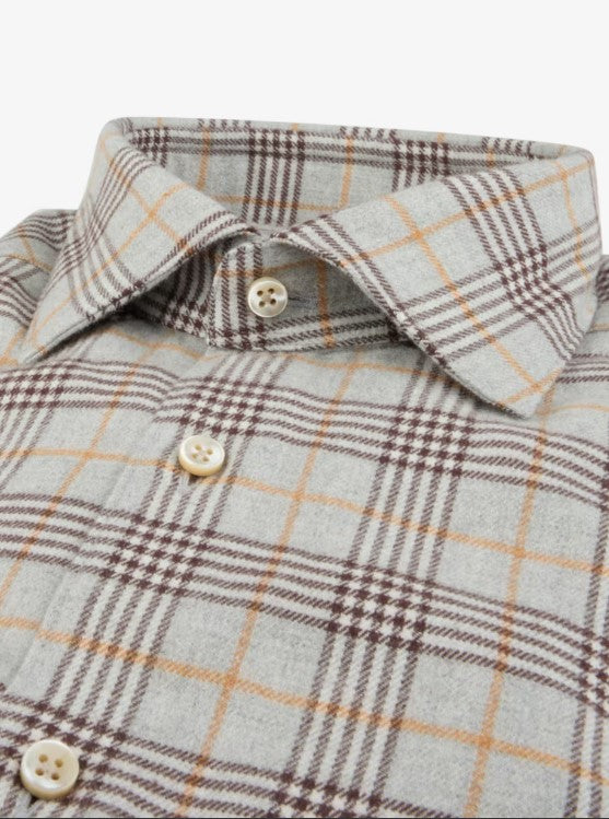 Denne rutete flanellskjorten er laget av twofold bomull. Skjorten har perlemorsknapper, enkle mansjetter og cut away-krage.