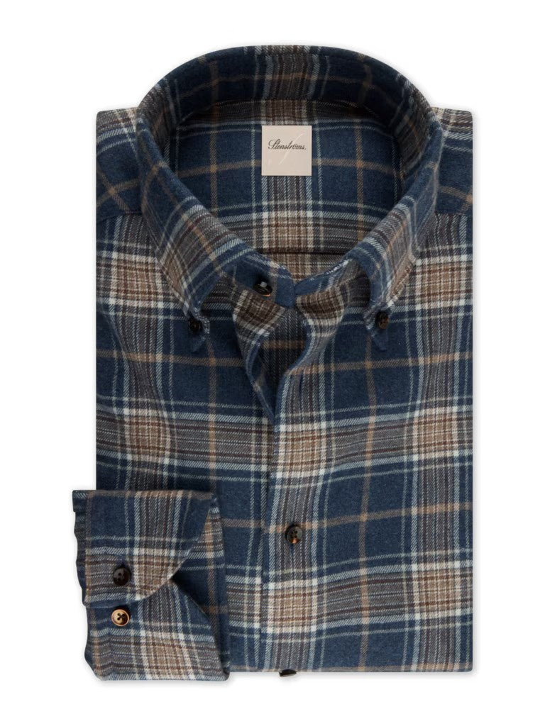 Stilren og klassisk rutete flanellskjorte laget av mykeste bomullsflanell. Skjorten har perlemorsknapper, enkle mansjetter og button down-krage.