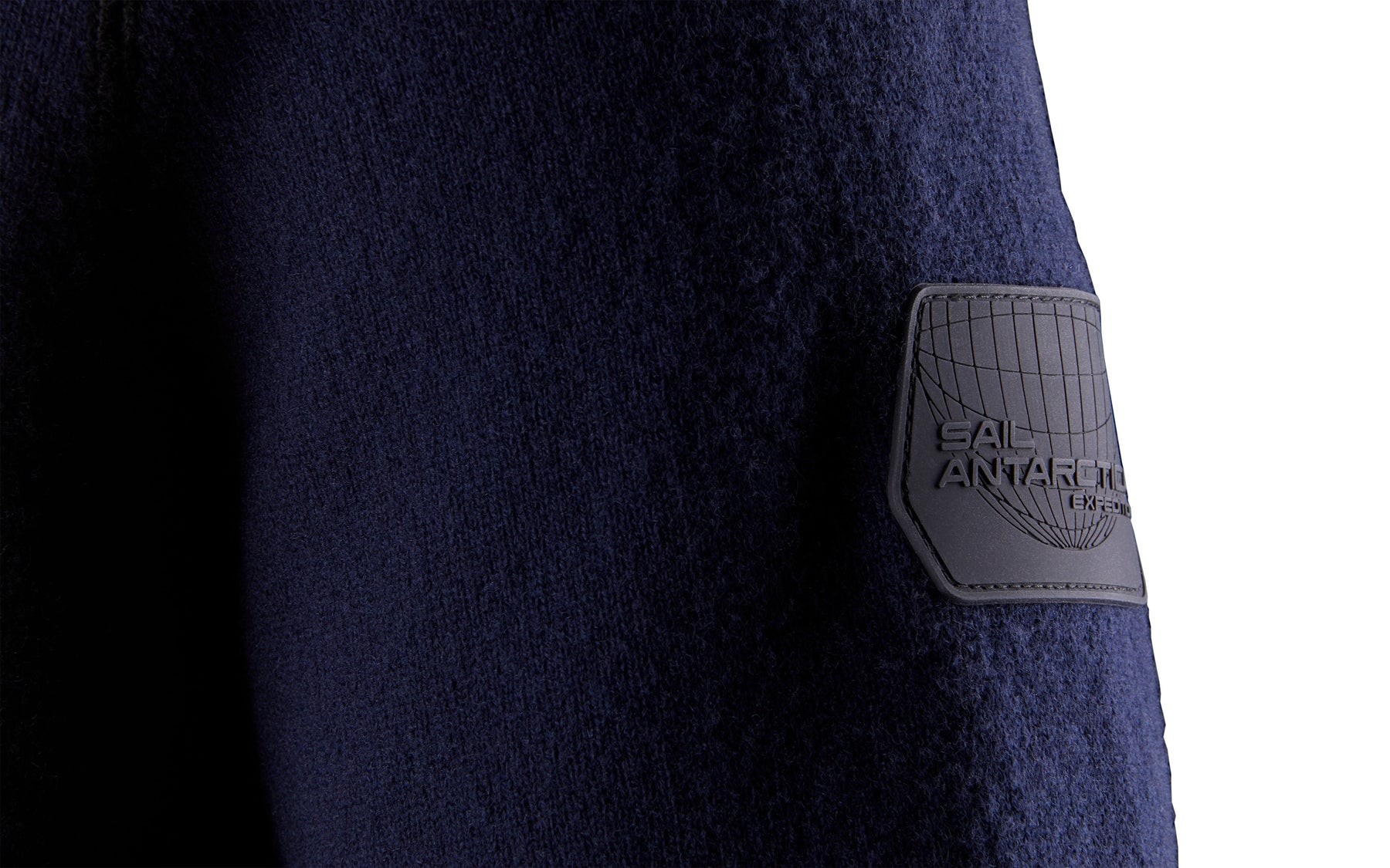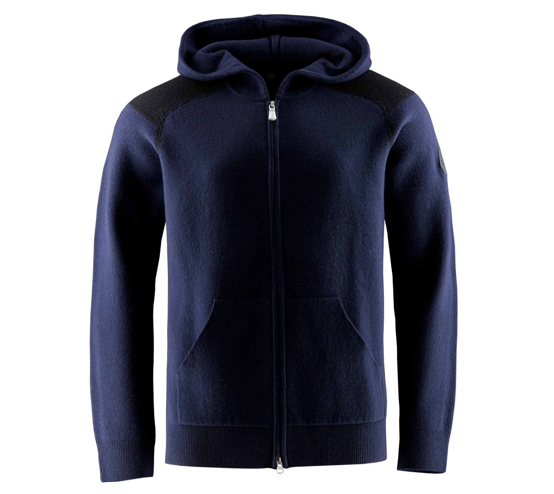 Pine Knitted Zip Hood er en strikket hettejakke laget av myk, tovet merinoull som gir naturlig varme og pusteevne. Hettejakken har toveis glidelås og ribbestrikkede mansjetter på ermeendene og nederst på kanten, samt to åpne lommer i livet. Den er designet med kontrastfargede paneler langs skuldrene og under armene, og har en Sail Antarctica-logo på venstre erme.