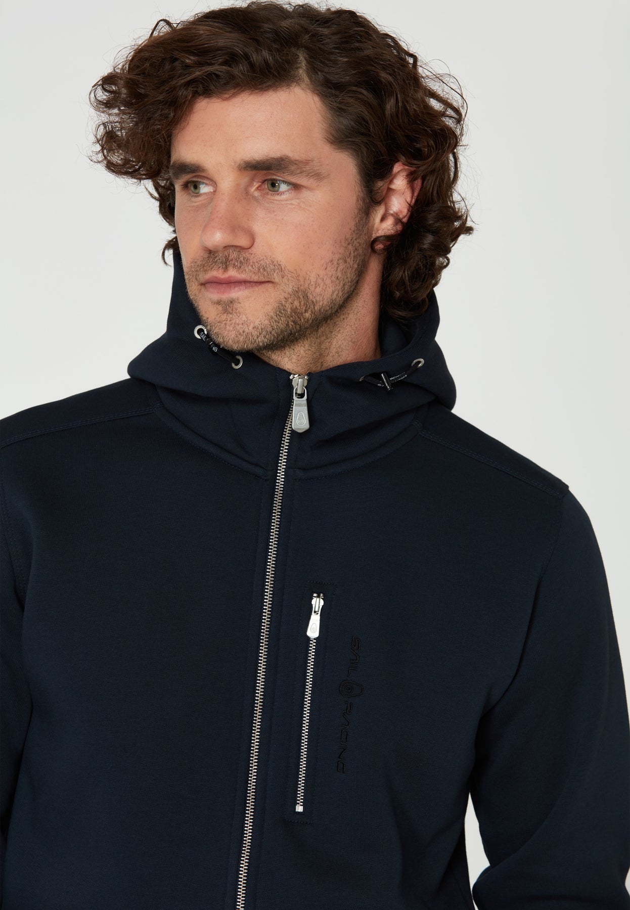 The classic Bowman Zip Hood made in cotton and polyester. Zipper closure at front, adjustable hood and waist pockets. Ribb at bottom and sleeve end. Sail Racing logo embroidery at chest pocket and a bloc embroidery at top of hood.