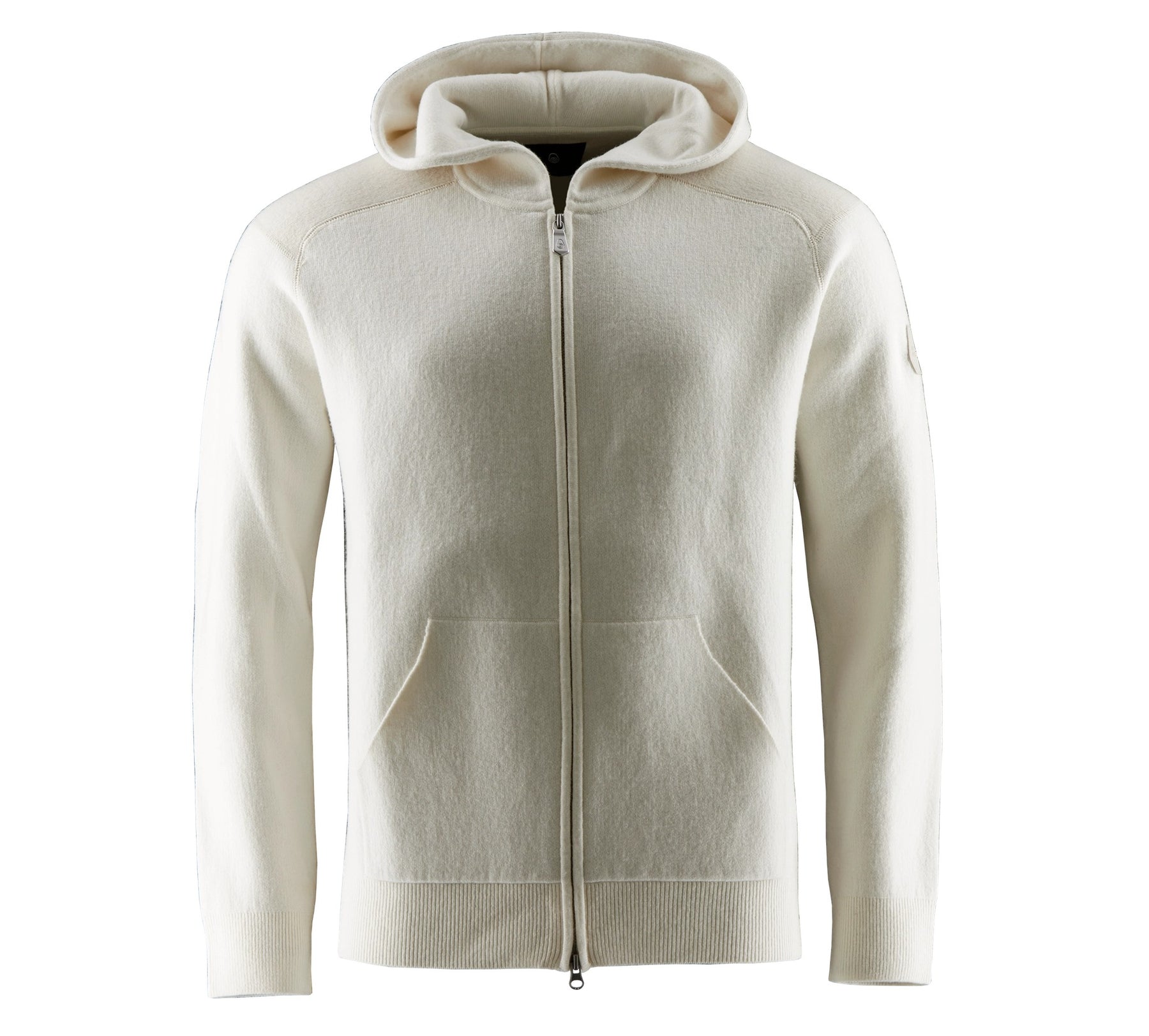 Pine Knitted Zip Hood er en strikket hettejakke laget av myk, tovet merinoull som gir naturlig varme og pusteevne. Hettejakken har toveis glidelås og ribbestrikkede mansjetter på ermeendene og nederst på kanten, samt to åpne lommer i livet. Den er designet med kontrastfargede paneler langs skuldrene og under armene, og har en Sail Antarctica-logo på venstre erme.